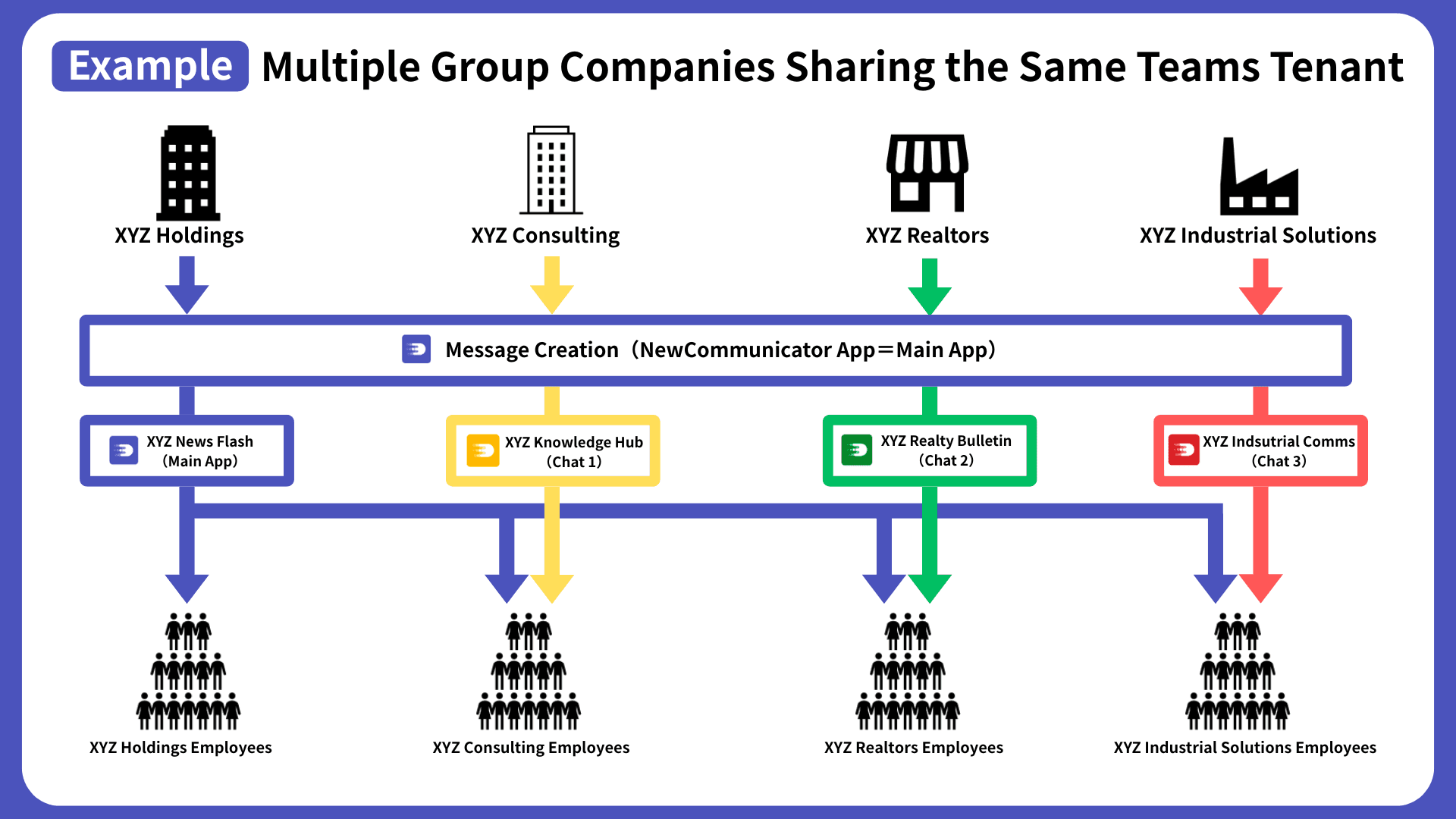Note: The above is one example. For implementation across group companies sharing the same Microsoft Teams tenant, please contact the NewCommunicator team for additional use cases.